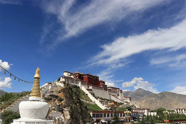游覽充滿(mǎn)濃郁虔誠(chéng)信仰的圣城拉薩,前往世界上海拔最高的宮堡式建筑群布達(dá)拉宮(游覽時(shí)間約2.5小時(shí)),公元七世紀(jì)松贊干布為迎娶文成公主而興建,整座宮殿有鮮明的藏式風(fēng)格,依山而建,氣勢(shì)雄偉,紅宮里面珍藏有歷史悠久的金質(zhì)靈塔和珍貴的壁畫(huà)、唐卡、佛像,白宮是西藏歷代達(dá)賴(lài)?yán)锲鹁?、誦經(jīng)及處理行政事務(wù)的場(chǎng)所。午餐后,游覽參觀建于吐蕃王朝時(shí)期的最早的佛堂-大昭寺(游覽時(shí)間約1.5小時(shí)),寺前終日香火繚繞,信徒們虔誠(chéng)的叩拜在門(mén)前的青石板上留下了等身長(zhǎng)頭的深深印記,萬(wàn)盞酥油燈長(zhǎng)明,留下了歲月和朝圣者的痕跡。游覽結(jié)束后,游客自行游覽八角街,感受一下西藏的人文風(fēng)土,瀏覽民族特色和異域風(fēng)情的手工制品。(此天行程寬松,全程游覽時(shí)間在6小時(shí)左右)