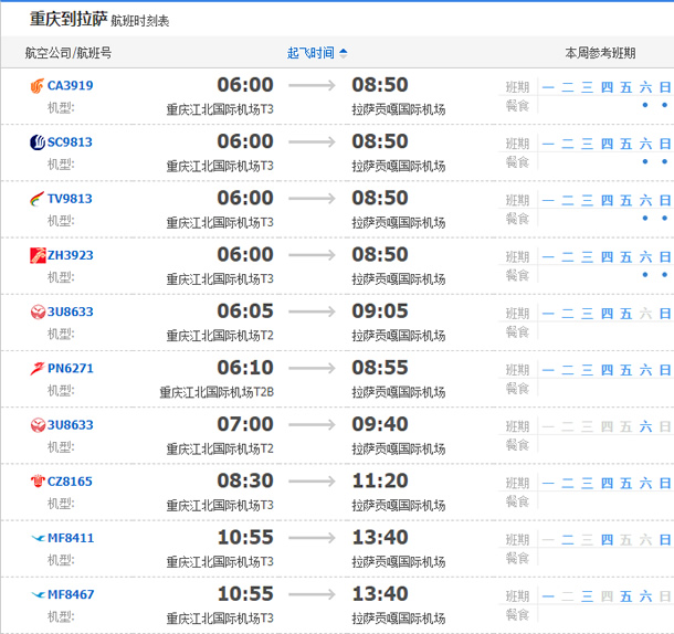 上一篇:拉薩到重慶飛機(jī)航班時(shí)刻表 下一篇:拉薩到成都飛機(jī)航班時(shí)刻表