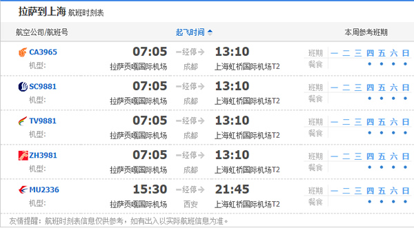 上一篇:西寧到拉薩飛機(jī)航班時(shí)刻表 下一篇:上海到拉薩飛機(jī)航班時(shí)刻表